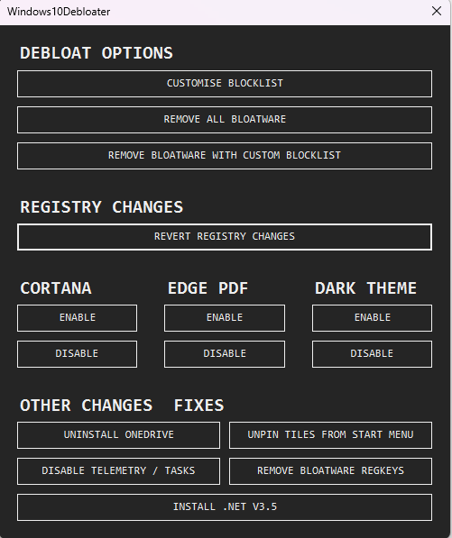 -> Khôi phục theo danh sách debloat, bạn muốn khôi phục vì lỡ tay debloat thì sử dụng tính năng này ^^