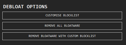 Remove Bloatware With Custom Blocklist: Debloat gói/app theo danh sách mà bạn lựa chọn.