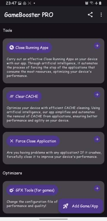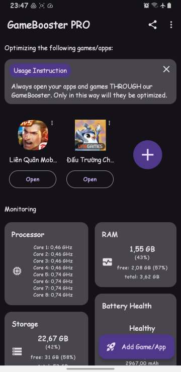 Ứng dụng giảm lag và tăng FPS không cần ROOT, một ứng dụng booster phải gọi là ngon nhất ở thời điểm hiện tại ( nói về chưa root ) . Trải nghiệm chơi game ở chế độ siêu mượt chỉ với app game booster.