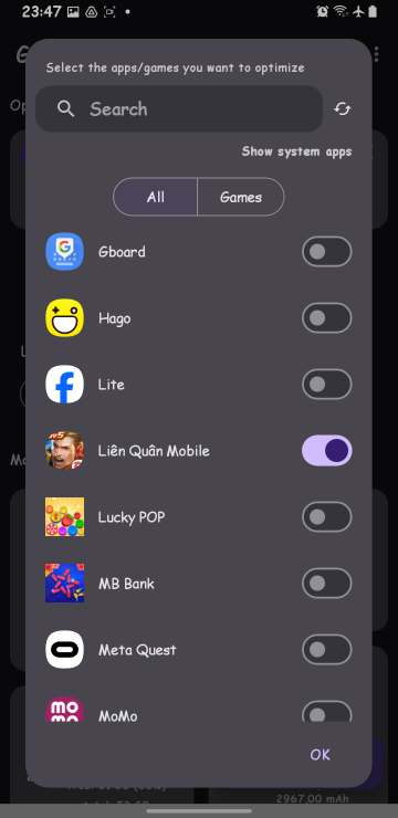 Bạn có thể thêm các trò chơi mà bạn muốn tối ưu hoá , tăng fps và giảm lag thì add game vô bằng “+” nhé.