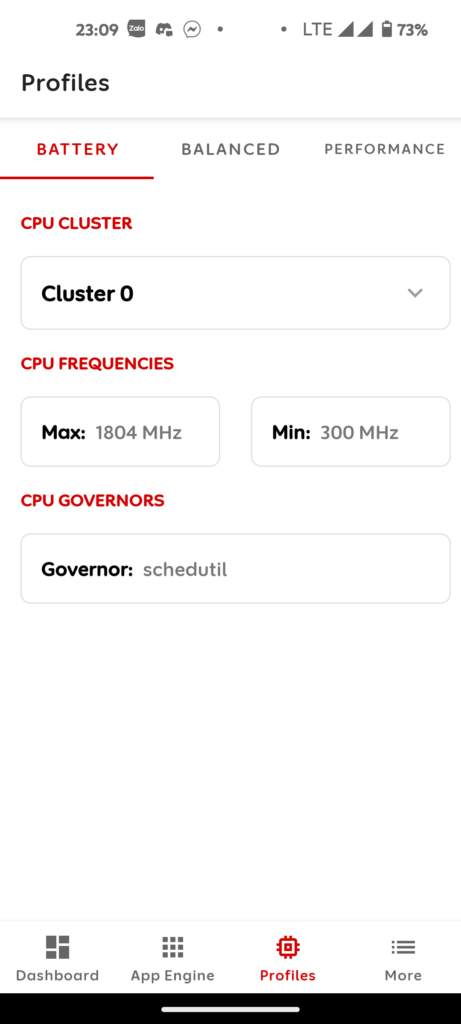 • Balanced: áp dụng cho app hoạt động cpu với mức xung trung bình và ổn định, không lag không nóng máy và trung lập giữa tiết kiệm pin và hiệu suất cao, có thể áp dụng cho ứng dụng game nhẹ, netflix (1080p), xử lí cần mức độ trung trung,…