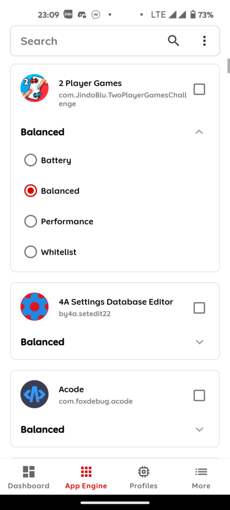 • Battery: áp dụng cho app hoạt động cpu với xung nhịp thấp, tiết kiệm pin và nhược điểm gây lag, dành cho ứng dụng dạng youtube, lướt web, bài viết, lướt báo, nhắn tin messenger zalo,…