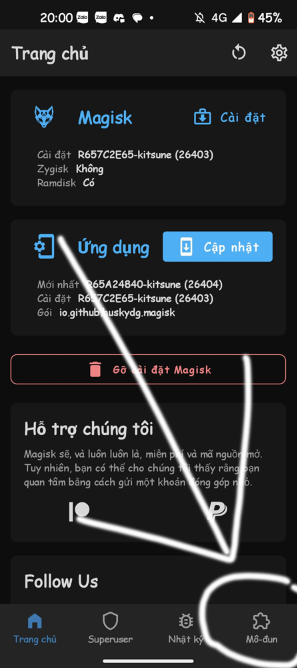 Đầu tiên là mở app magisk và truy cập module .