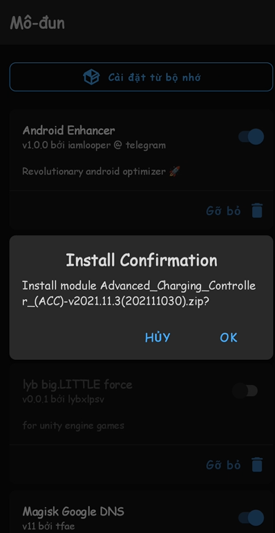Advanced_Charging_Controller_(ACC)-v2021.11.3(202111030).zip : Là module cài đặt trên máy đã root và có magisk