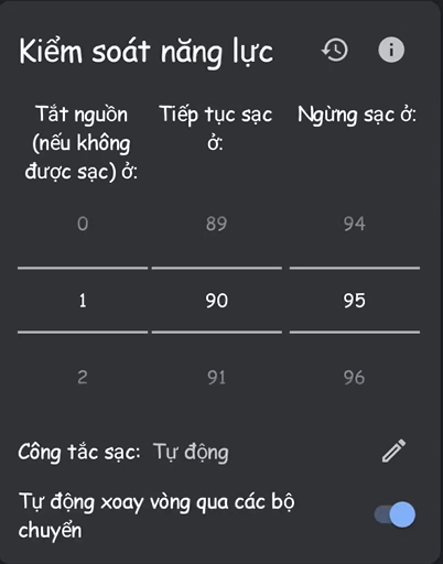 Tính năng này là tính năng hoàn hảo để thay thế cho tính năng “Kiểm soát năng lượng sạc”