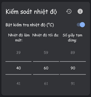 - Kiểm soát nhiệt độ ( An toàn bảo vệ máy và nên bật )