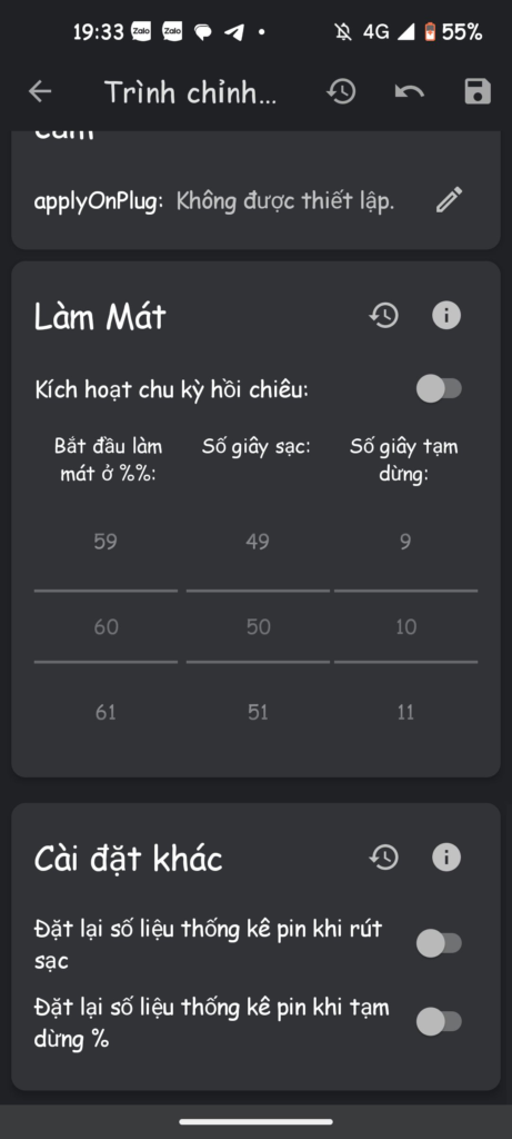 - Tuỳ chỉnh apply_onBoot và applyOnPlug ( Cho dân chuyên )