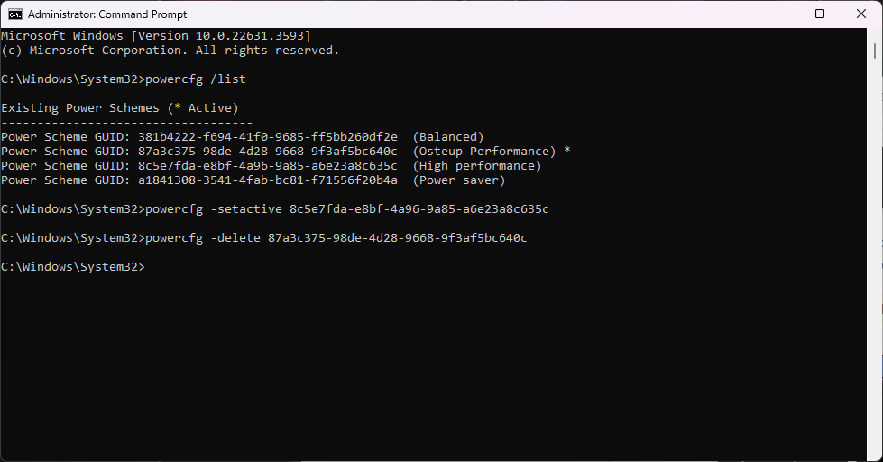 Xoá PowerPlan Đã tạo/Tuỳ chỉnh