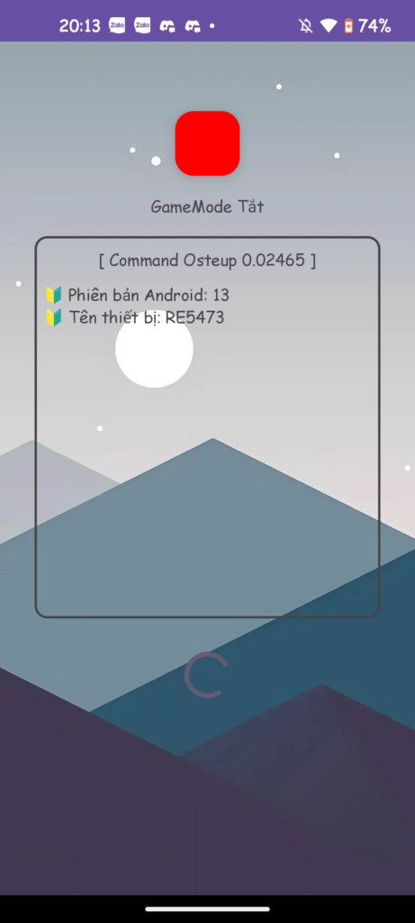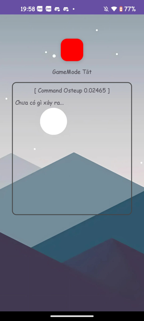Khi mới mở app nó sẽ là nút màu đỏ và gamemode tắt.