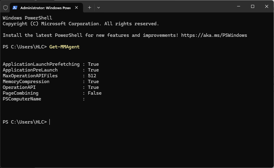 - MemoryCompression: True là chức năng đang được bật / False Là đang được tắt
